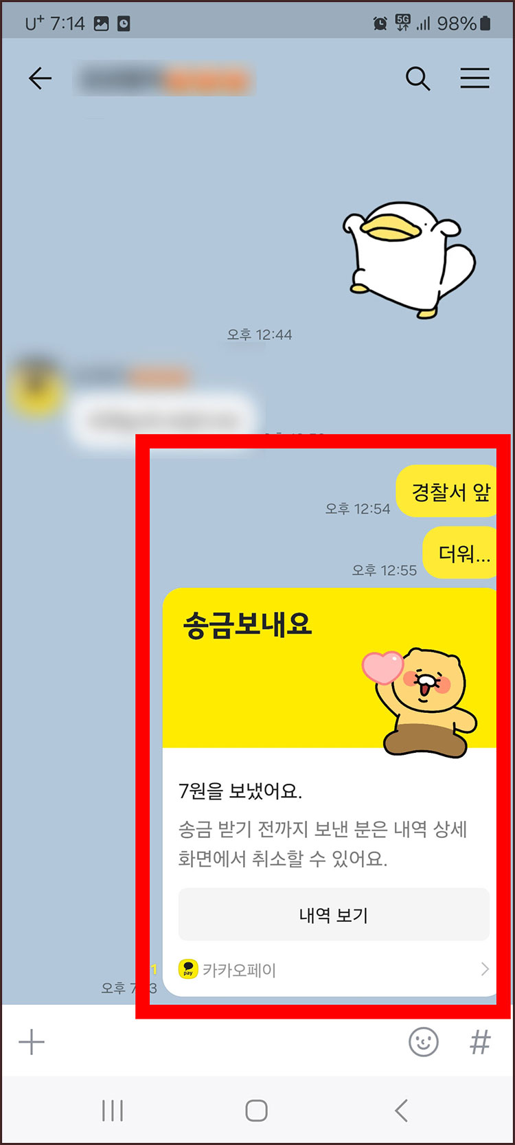 카톡 친구 차단 송금 표시