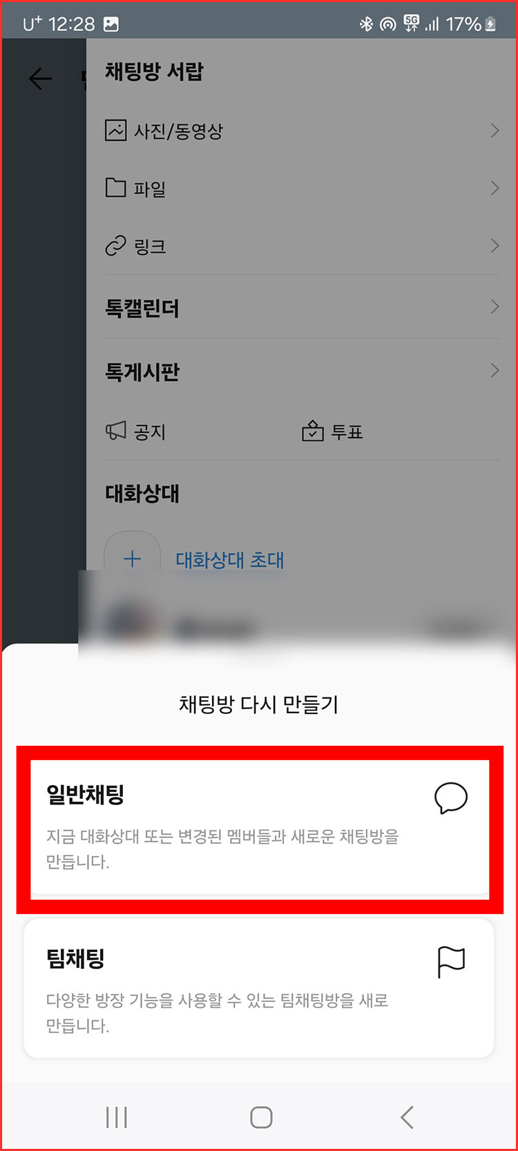 13. '새로운 채팅방 만들기'를 선택해주세요.