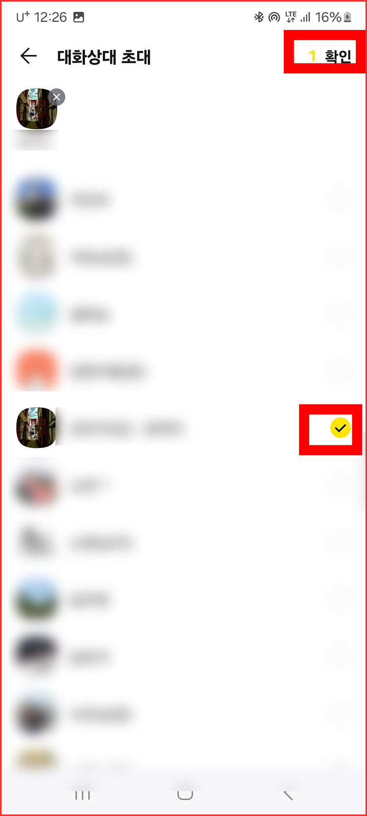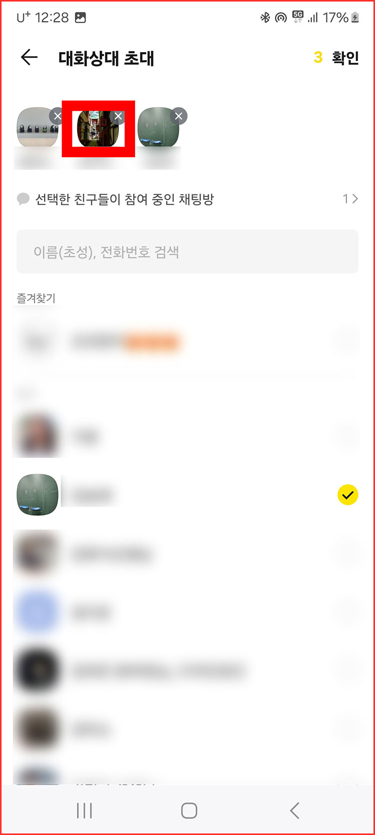 04. 그리고 여러분들이 단체톡방에 초대하고 '친구, 지인들을' 선택한 다음에 '확인'을 눌러주세요.