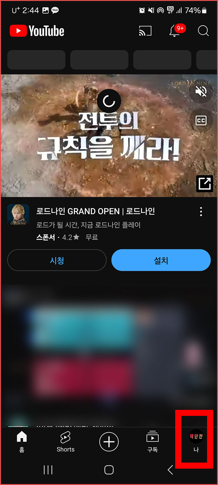 02. 유튜브 어플에 들어가면 우리에게 익숙한 첫 화면이 나올 겁니다. 이 상태에서 우측 하단에 있는 '본인 프로필'을 선택해주세요.
