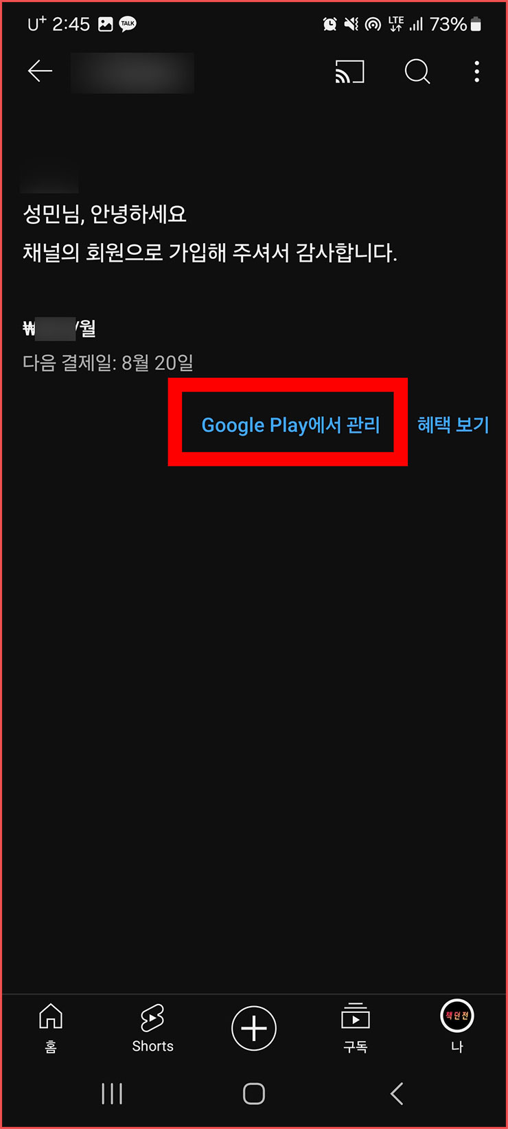 유튜브 채널 멤버십 취소 해지하기