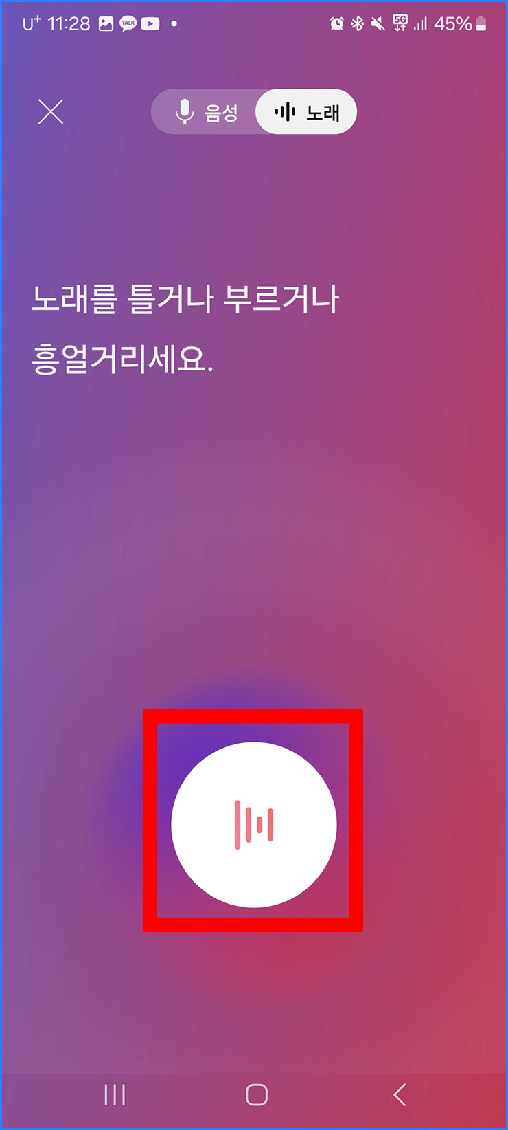 10. 이제 알아서 노래를 인식합니다. 네이버 앱과 동일하게 주변 소음이 너무 심하면 노래 인식을 잘 못할 수 있습니다. 노래를 인식하게 조금 기다려주세요.