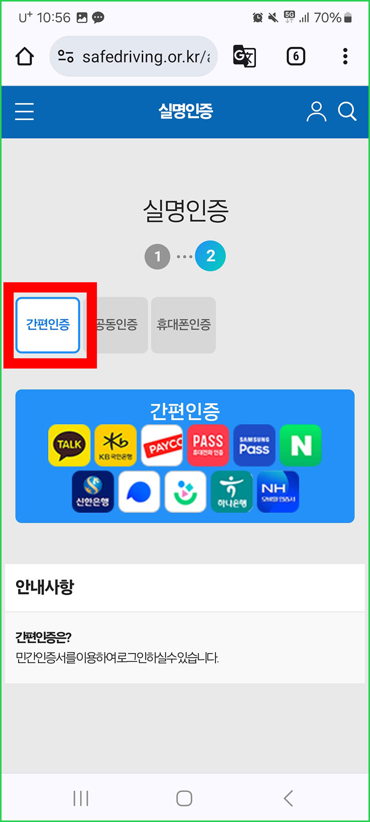 07. 이제 여러분들의 스마트폰이 여러분들의 명의인지를 인증해야 합니다. 과거에는 인증하는 방법이 어려웠지만 요즘에는 정말 간단하게 인증을 할 수 있습니다. 먼저 '간편인증' 글자를 눌러주세요.
