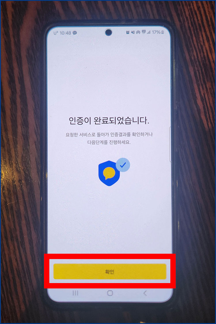 09. 카카오톡으로 정부24 어플 로그인을 마무리했다면 '인증완료'를 눌러주세요.