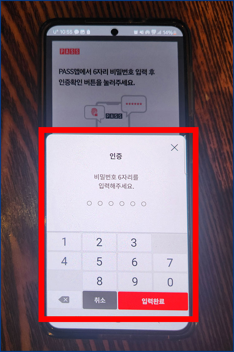 15. PASS 어플에 등록되어 있는 '비밀번호 6자리'를 입력해주세요.