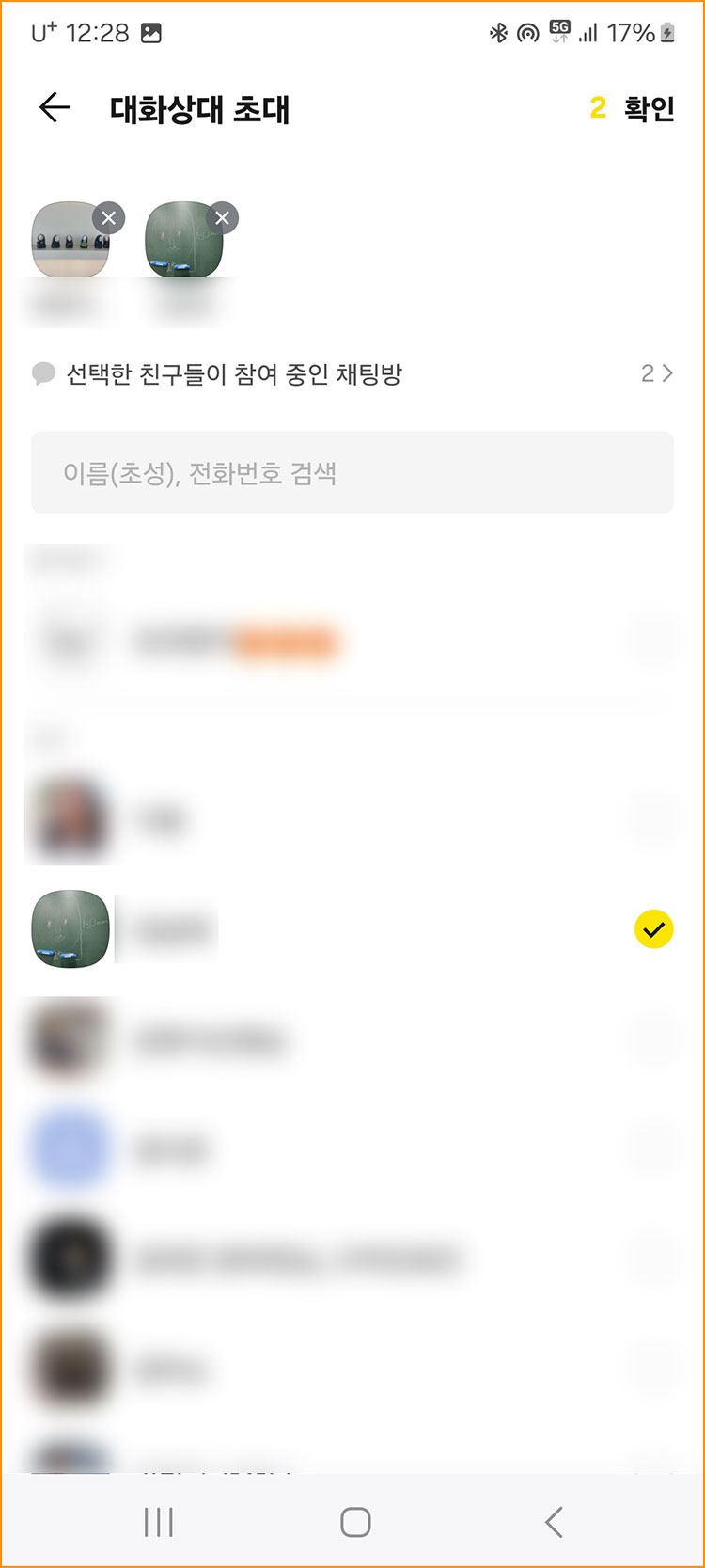 ▣ 초대하고 싶은 사람 체크 후 확인