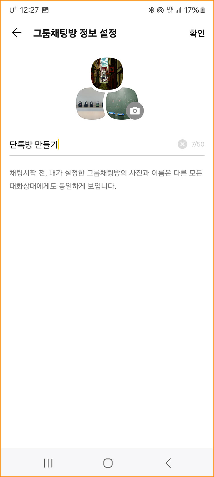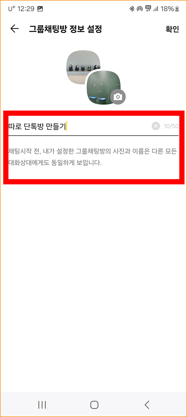 14. 똑같이 단톡방 이름을 정해준 다음에 '확인'을 선택해주세요.
