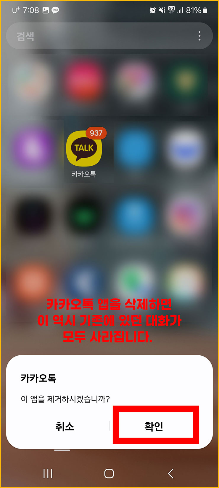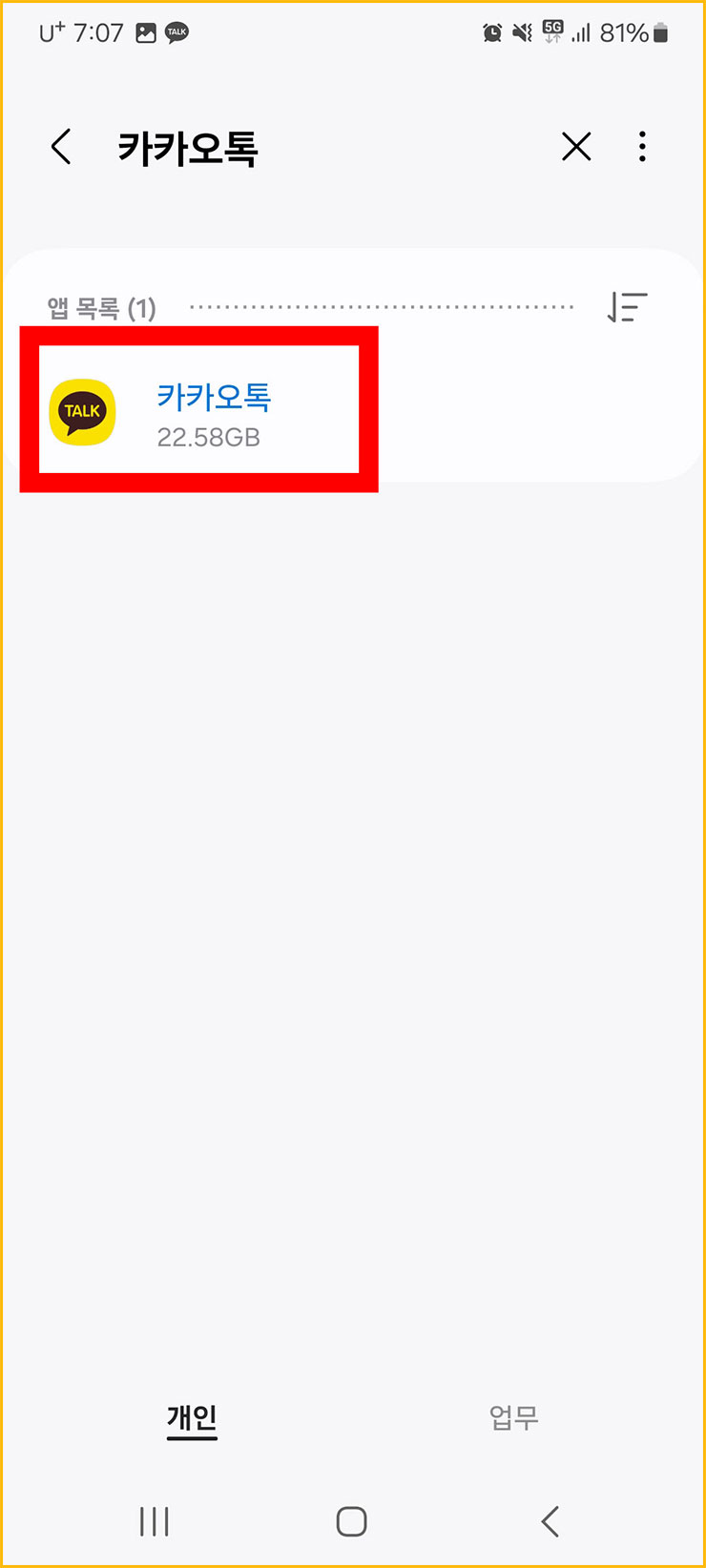 10. '깔려 있는 카카오톡 어플' '꾸욱' 눌러주세요.