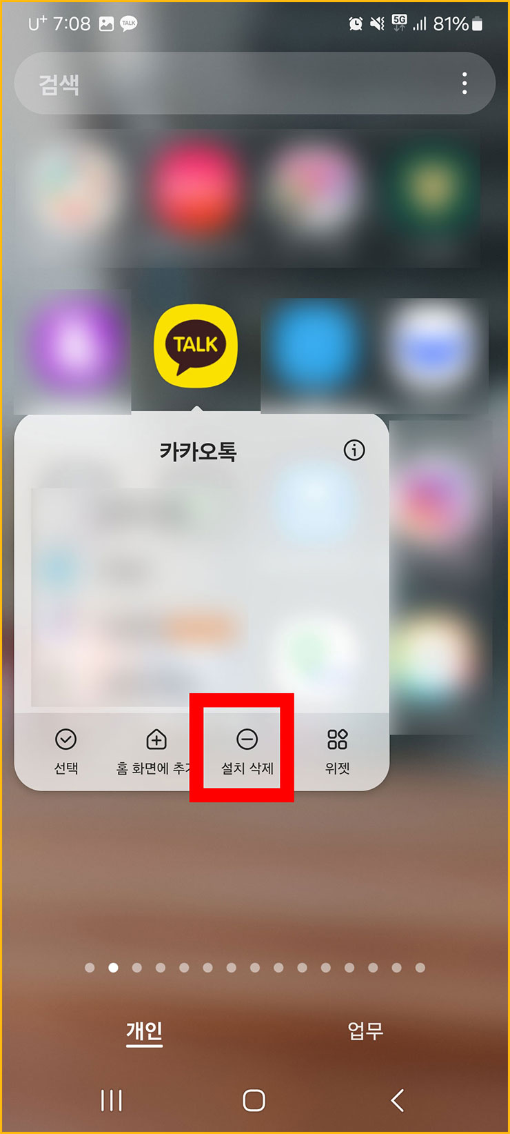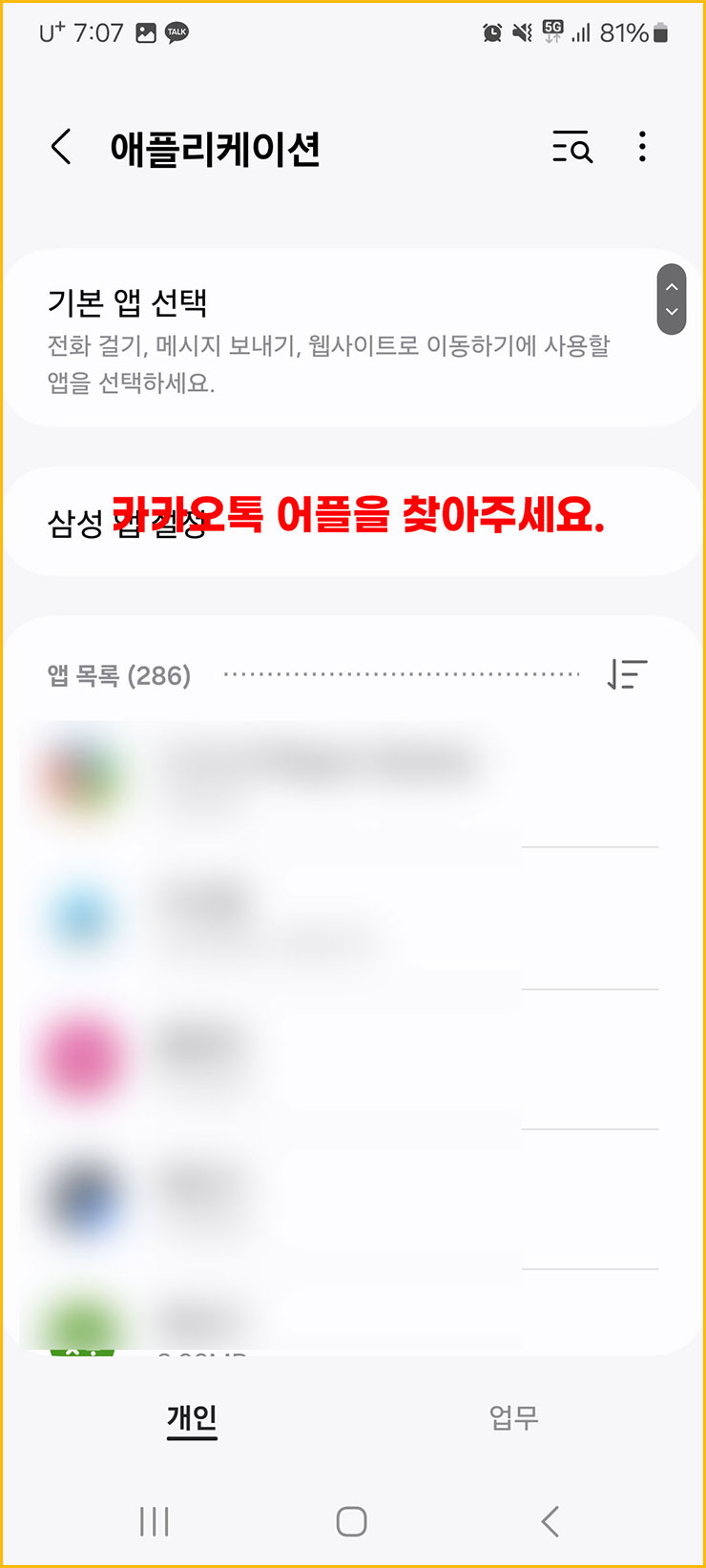 10. '깔려 있는 카카오톡 어플' '꾸욱' 눌러주세요.