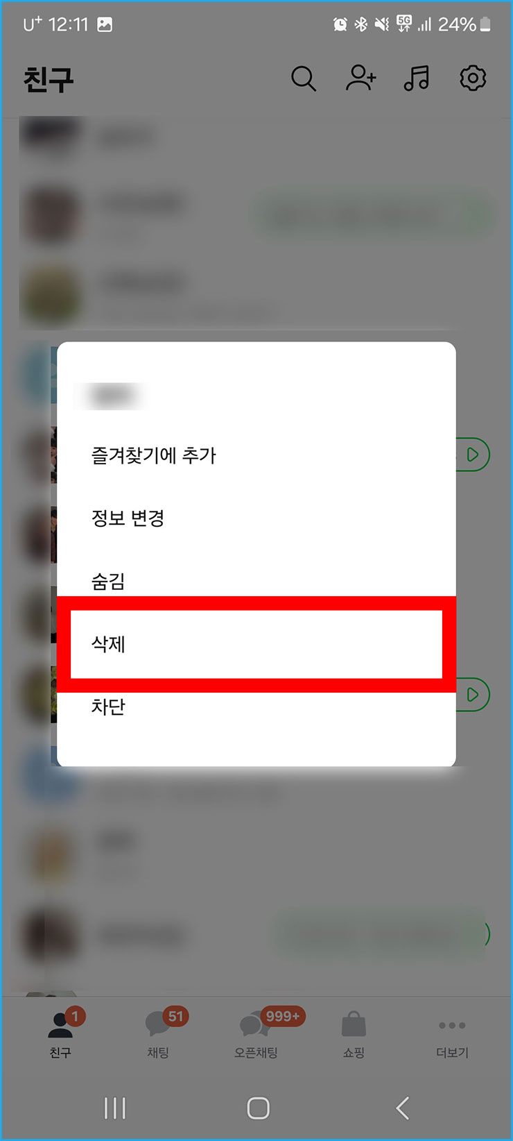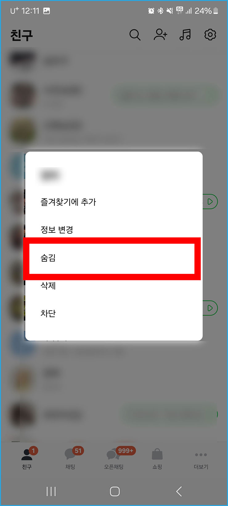 카카오톡 숨김 차단 해제