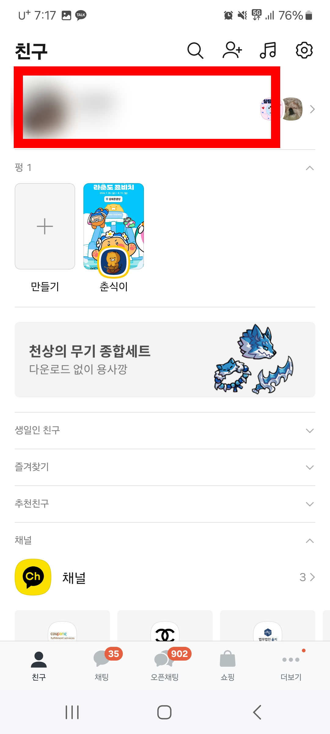 07. 이번에는 자신의 개인 톡에서 메세지 지우는 법에 대해서 알아보겠습니다. 먼저 '자신의 톡'에 들어가주세요.