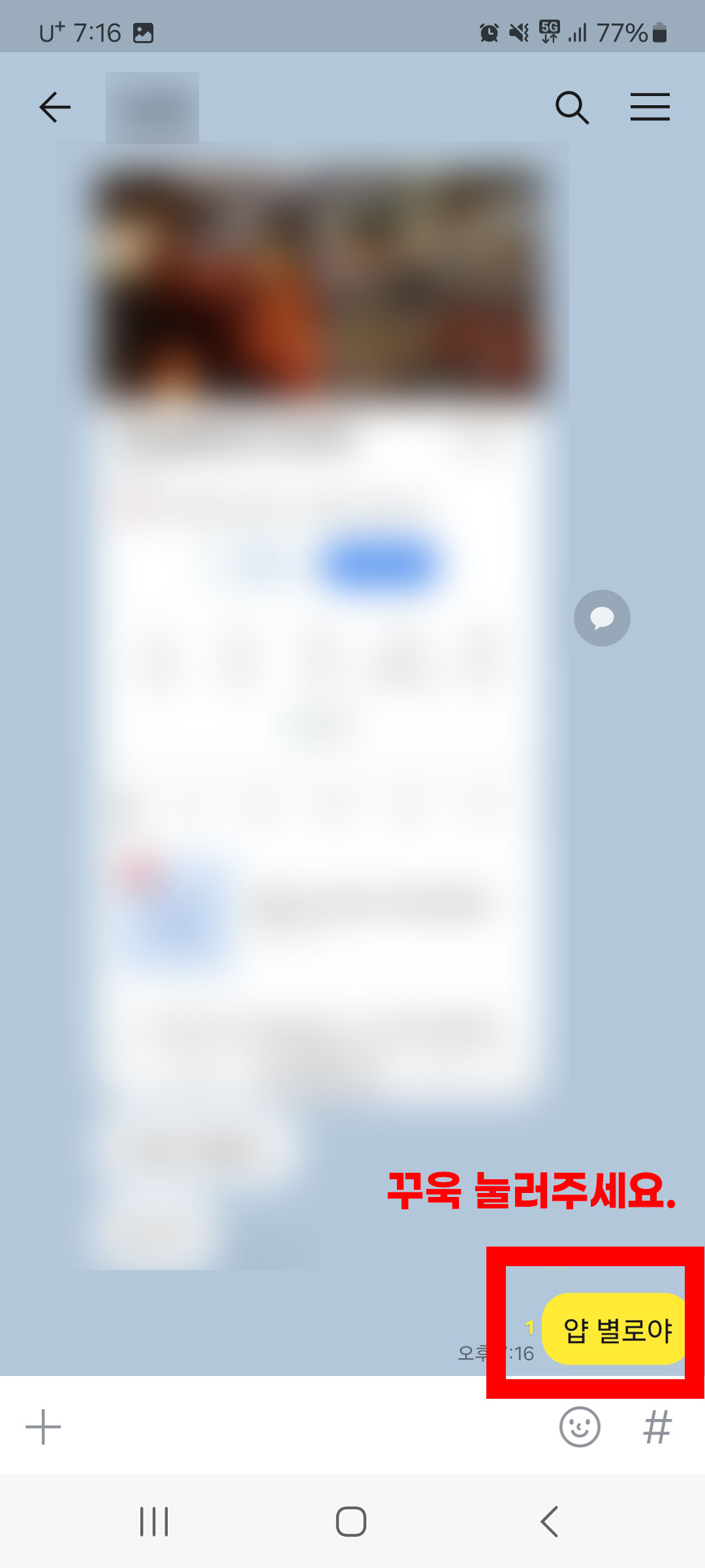 02. '지우고 싶은 메세지'를 1초 정도 '꾸욱' 눌러주세요.