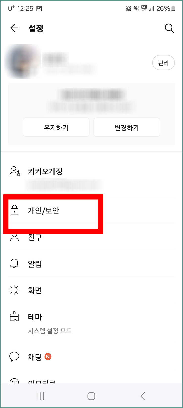카톡 설정창 들어가기