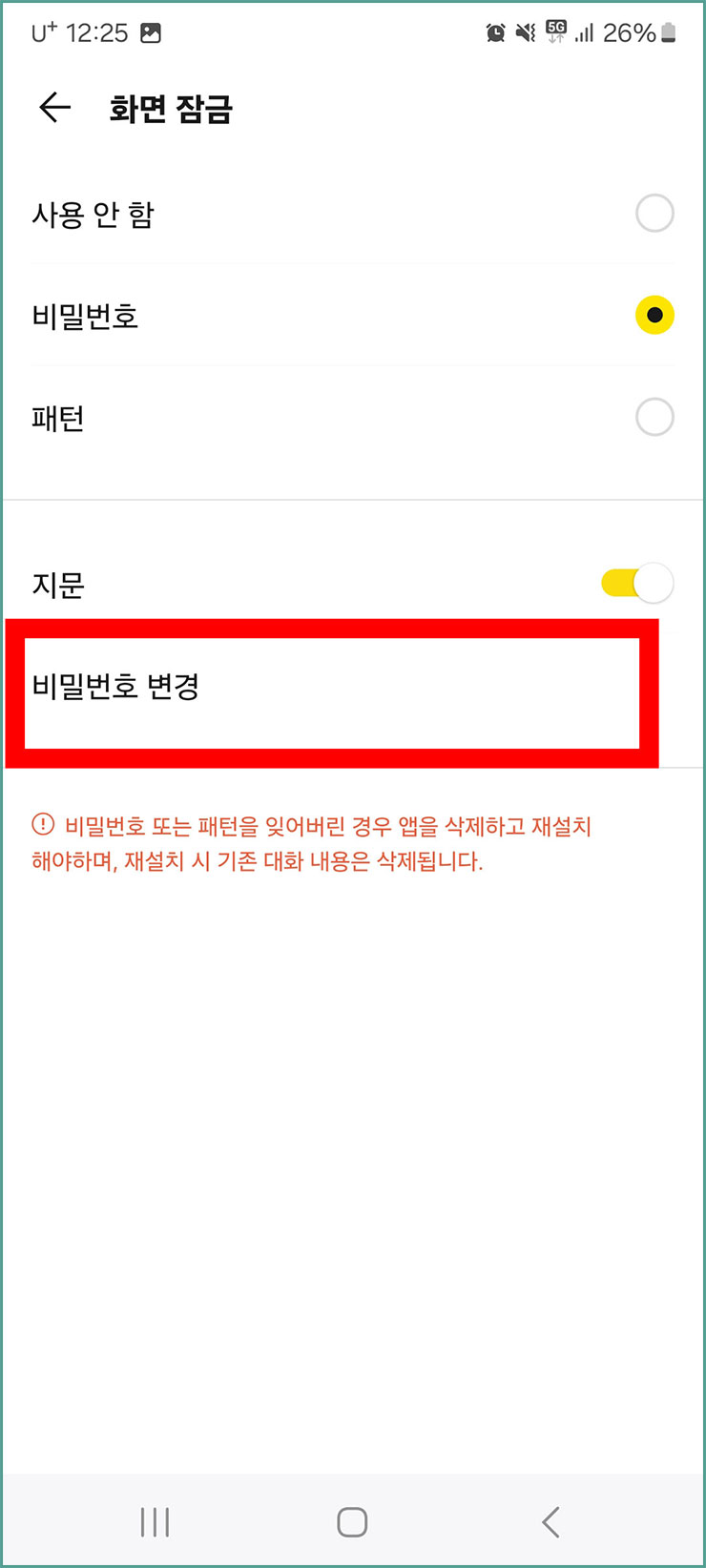 새로운 카톡 비밀번호 바꾸기