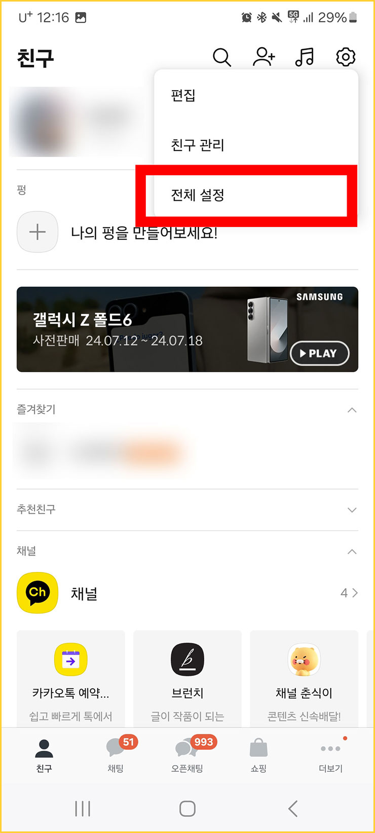 카톡 생일 알림 끄기 시작