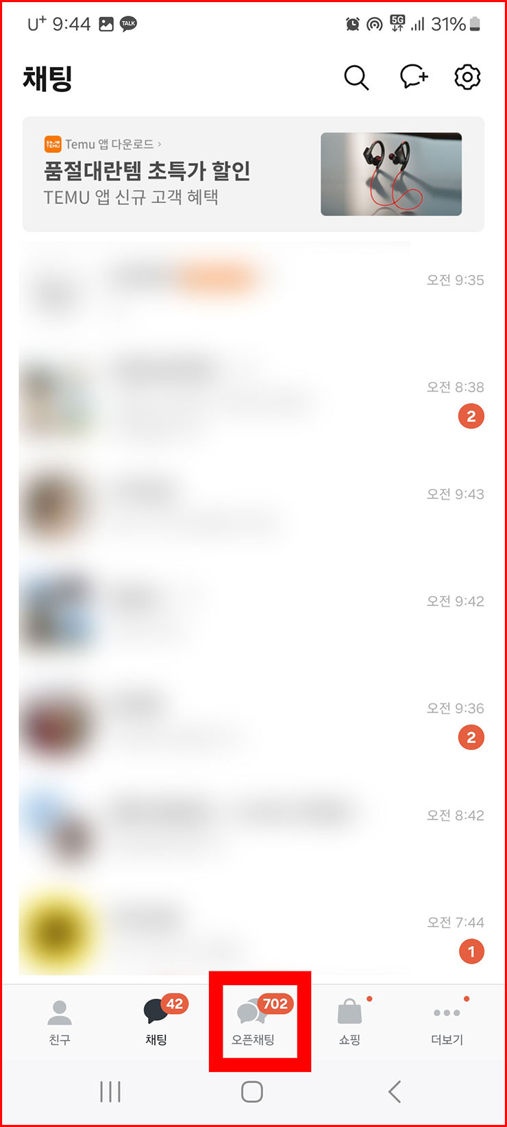 02. 우리는 오픈 채팅 프로필에서 검색 비허용을 할 것이기 때문에 하단에 있는 '오픈채팅'을 눌러주세요.