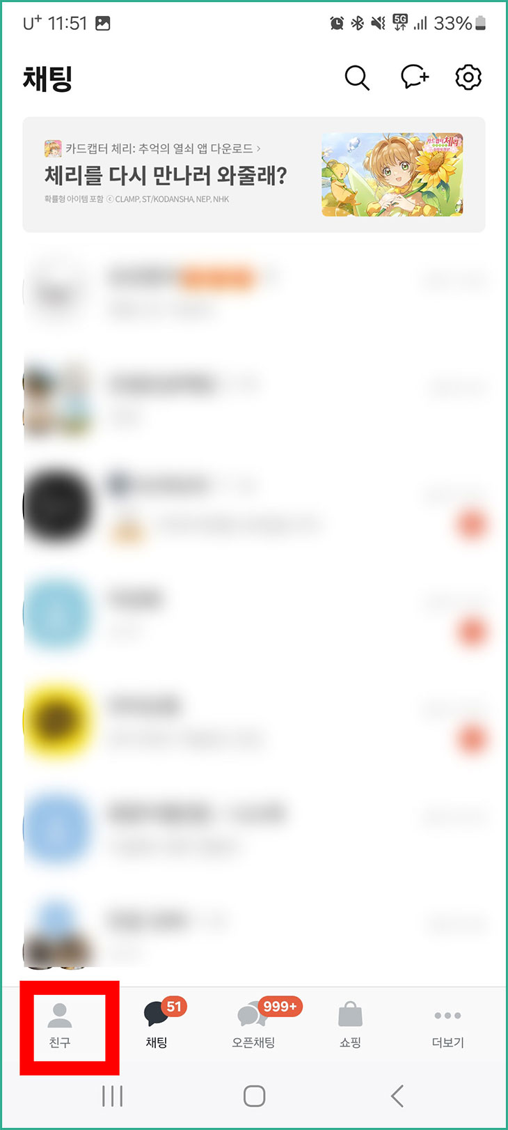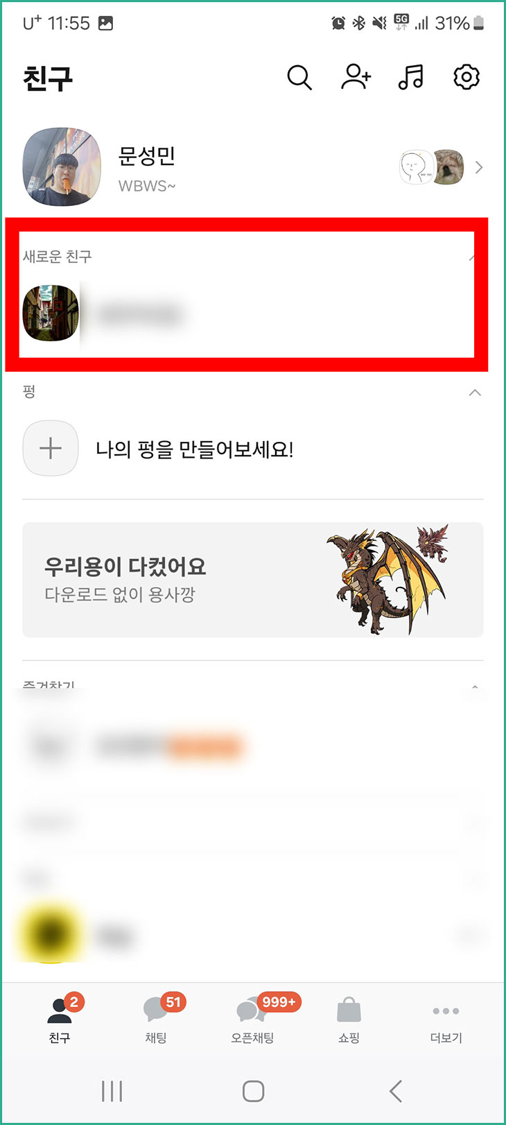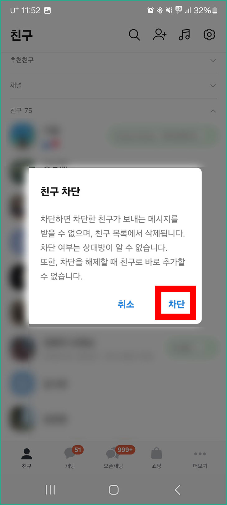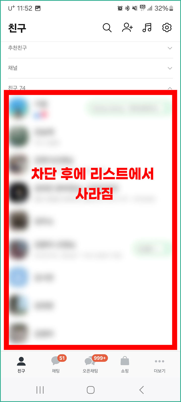 04. 친구창에서 차단한 친구가 사라진 것을 확인할 수 있습니다. 이제 차단을 했으면 해제하는 법도 알아야겠죠?