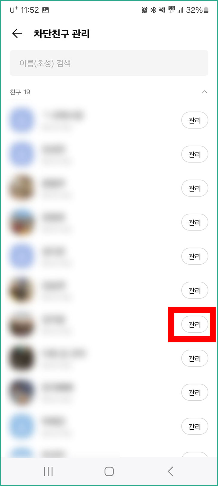 06. 그리고 여러분들이 카톡 차단 해제할 사람 옆에 있는 '관리'를 눌러주세요.