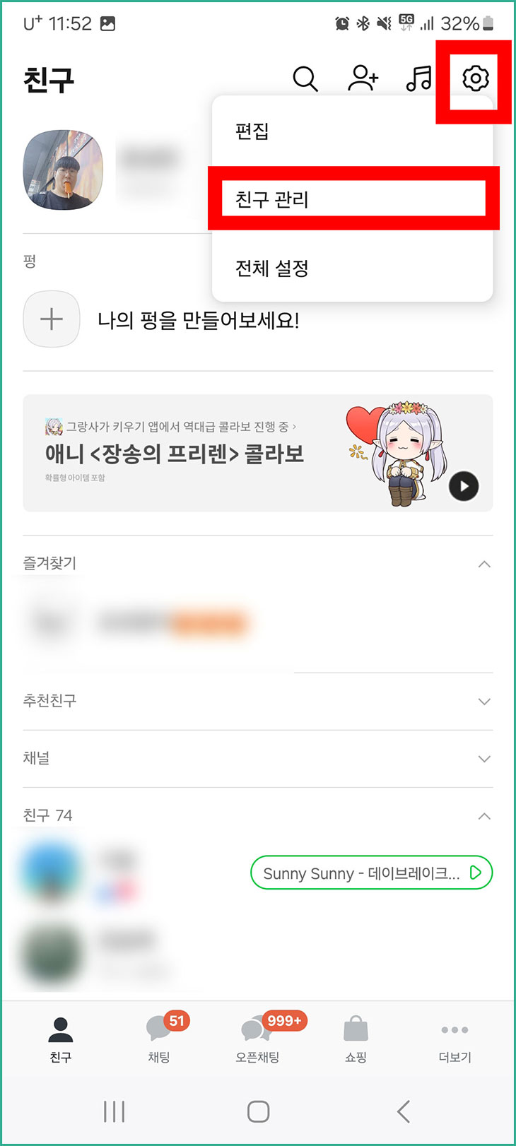 04. 친구창에서 차단한 친구가 사라진 것을 확인할 수 있습니다. 이제 차단을 했으면 해제하는 법도 알아야겠죠?
