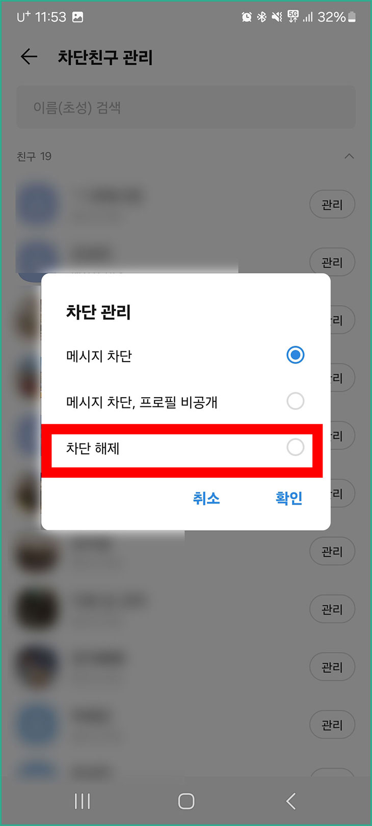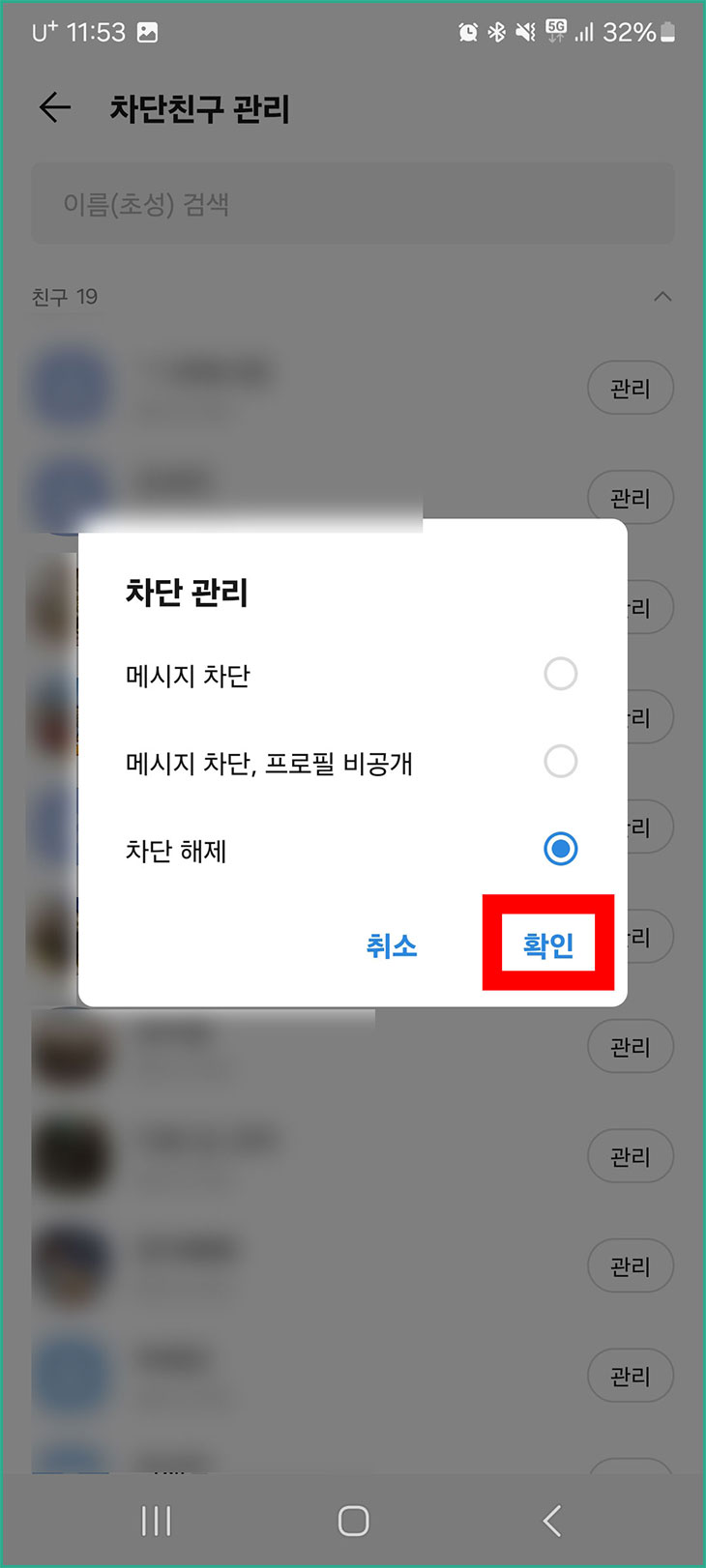 카톡 친구 차단 해제하기