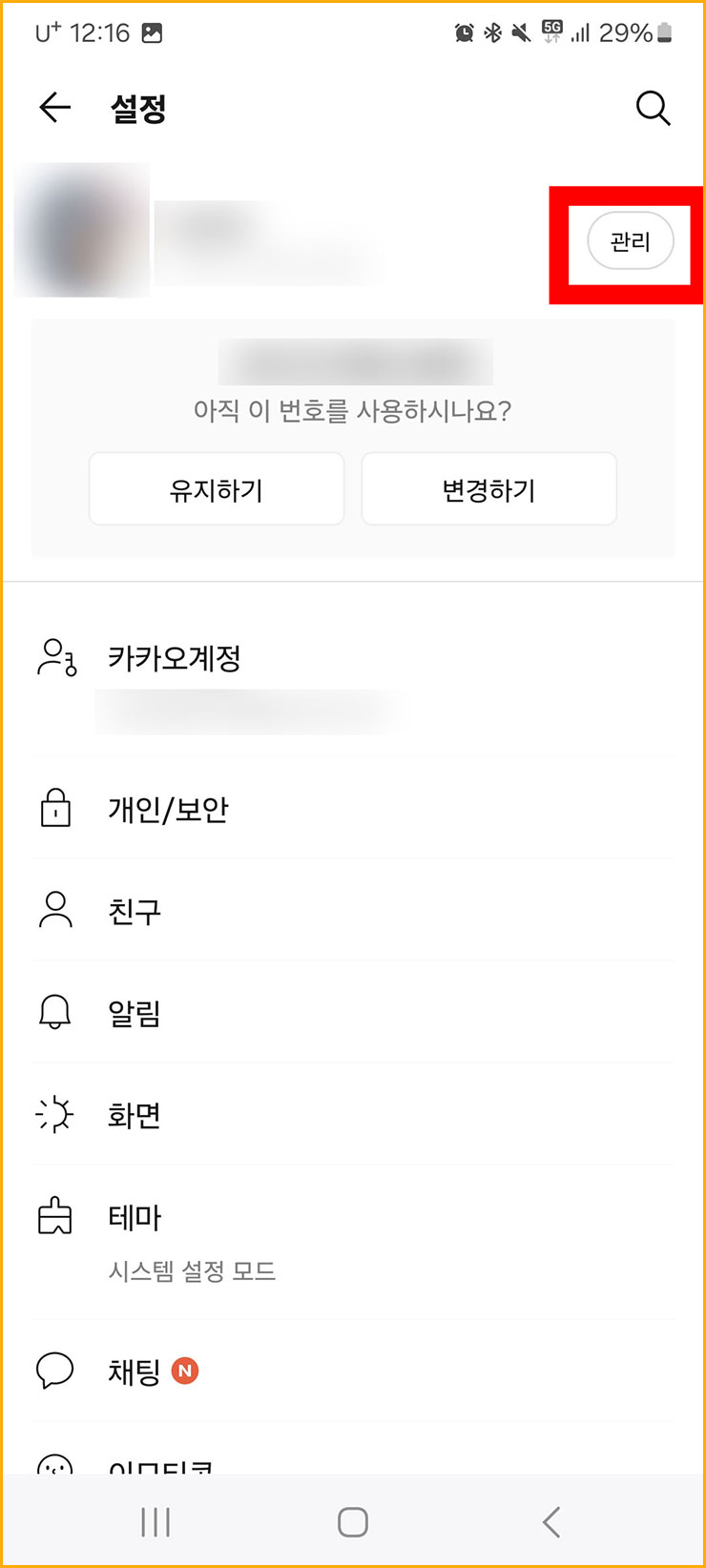 12. 오른쪽 위에 '관리'를 눌러주세요. 보통 여러분들의 개인정보 옆에 있습니다.