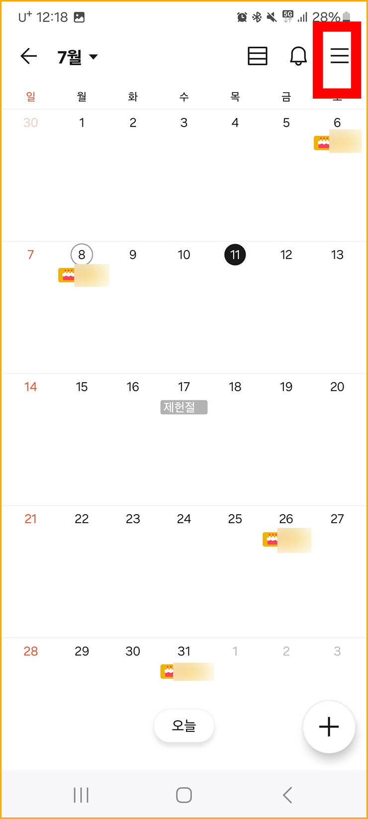 05. 캘린더 화면에서 우측 위에 있는 ' 三 '를 눌러주세요.