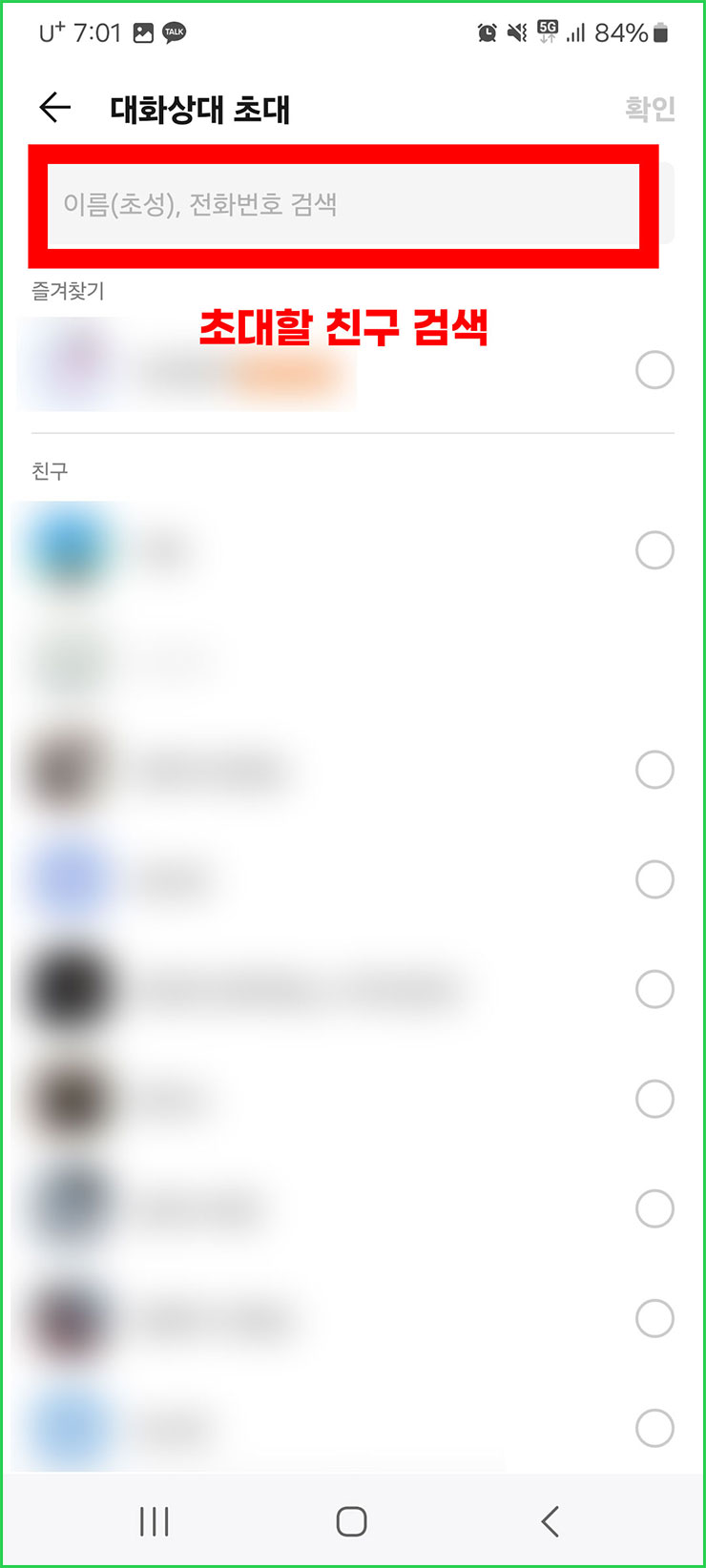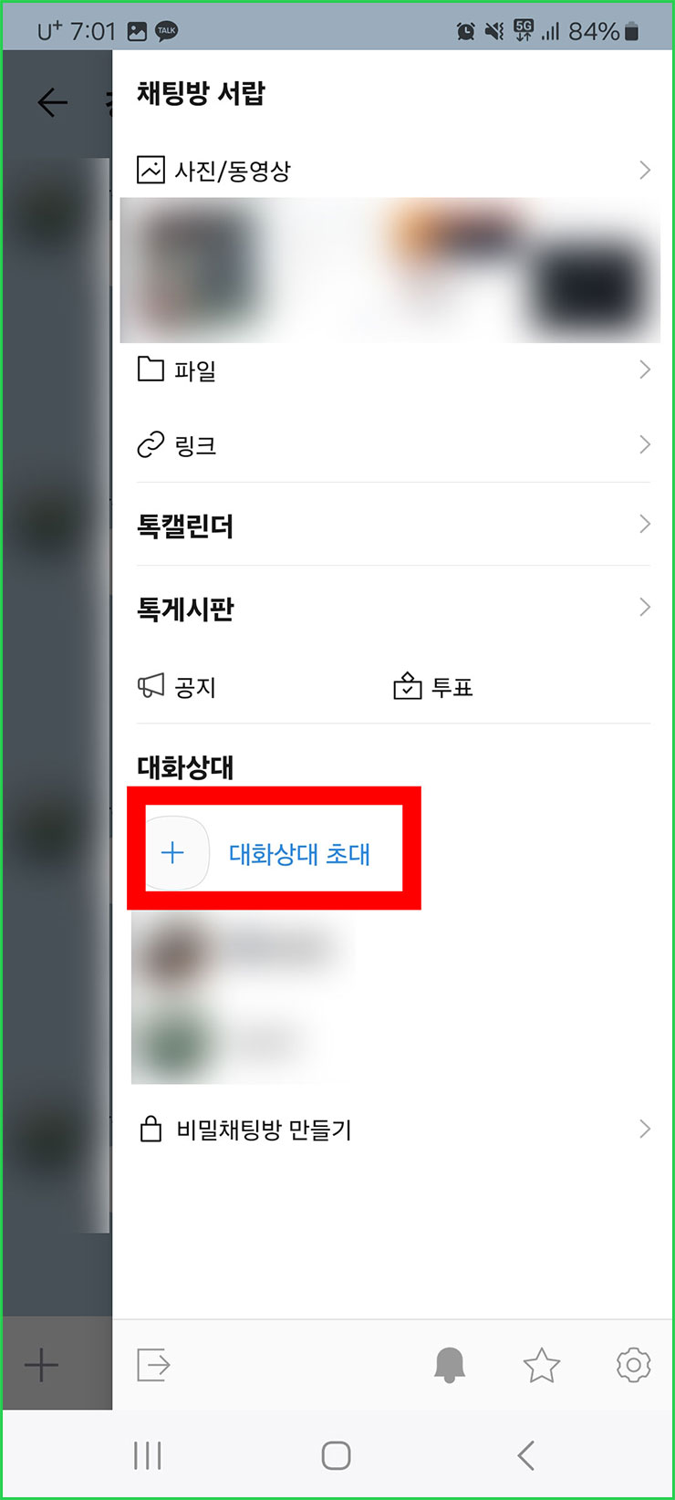 04. 중간쯤에 파란색 글자로 '대화상대 초대'라는 글자가 보이실 겁니다. 해당 글자를 선택해주세요.