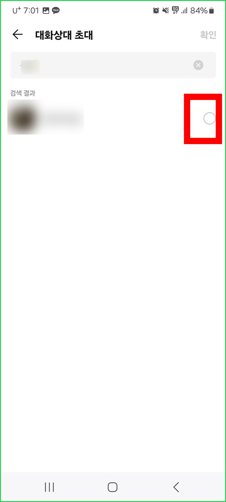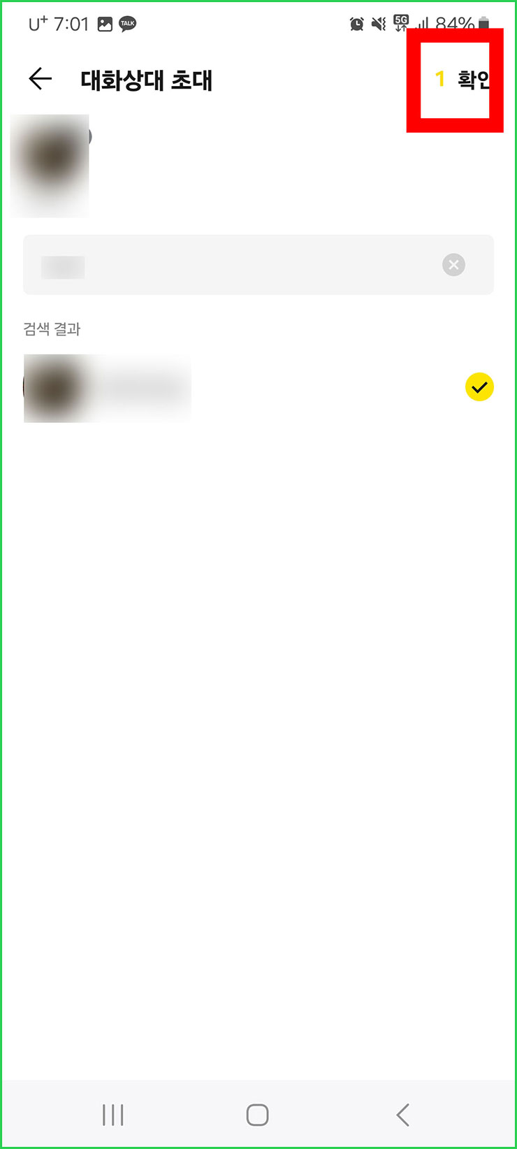 06. 친구의 프로필이 떴으면 우측에 '체크' 표시를 해주세요.