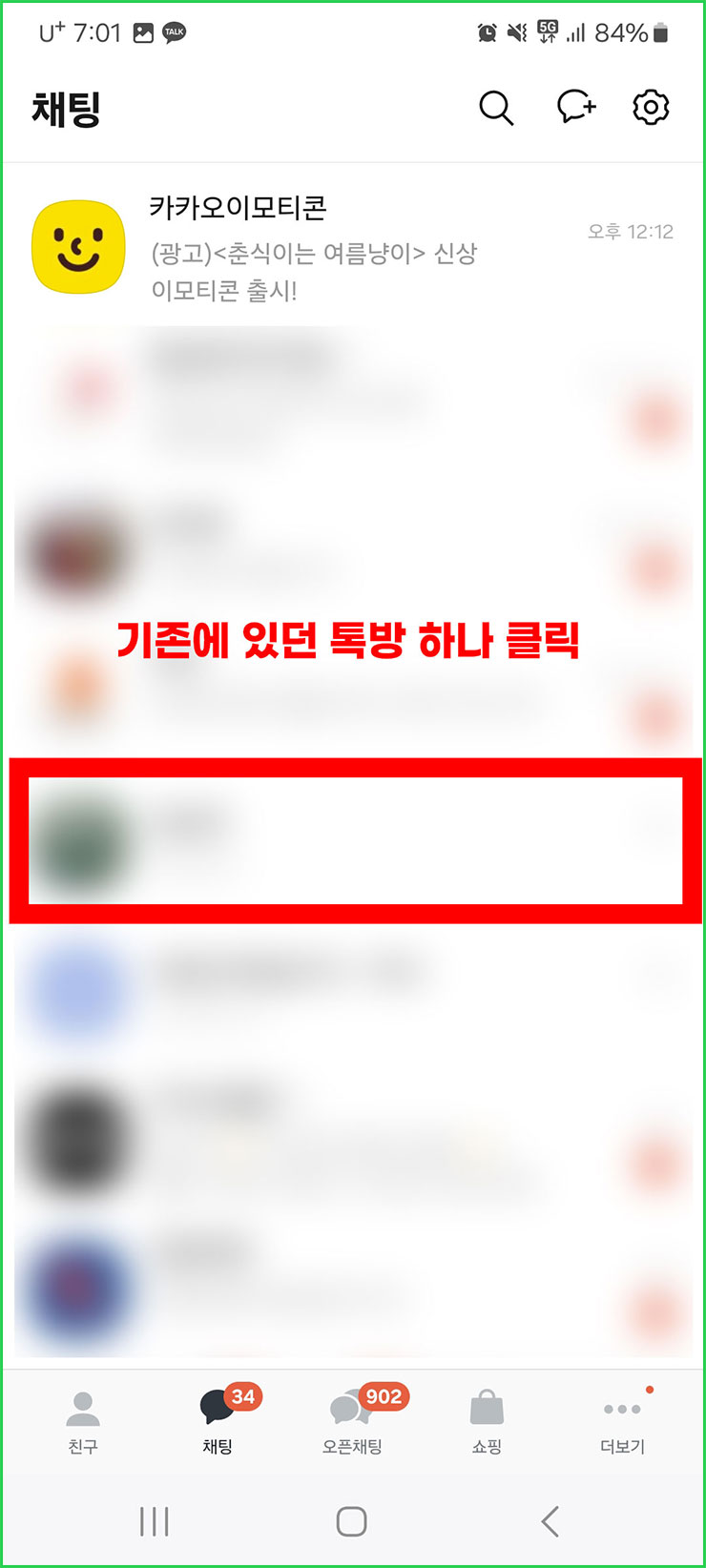 대화 상대를 초대할 카톡방 선택하기