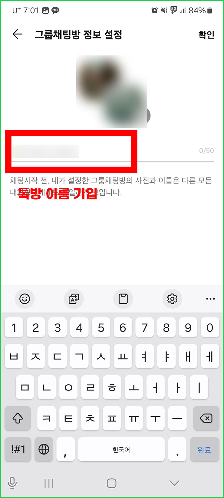 09. 단톡방명을 정했으면 우측 상단에 있는 '확인'을 눌러주세요.