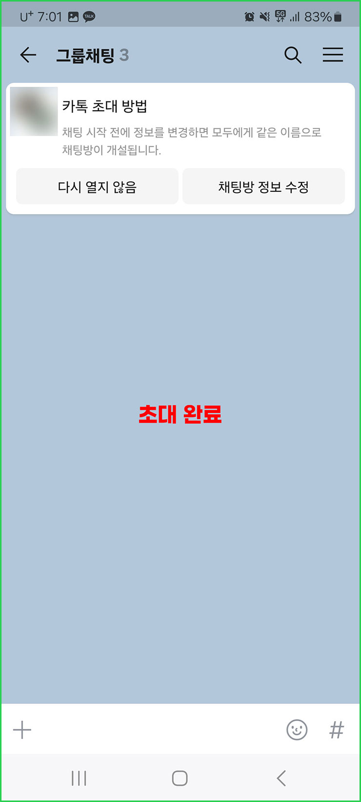 10. 아래처럼 톡방이 새롭게 개설되면서 친구가 초대된 것을 확인할 수 있습니다.