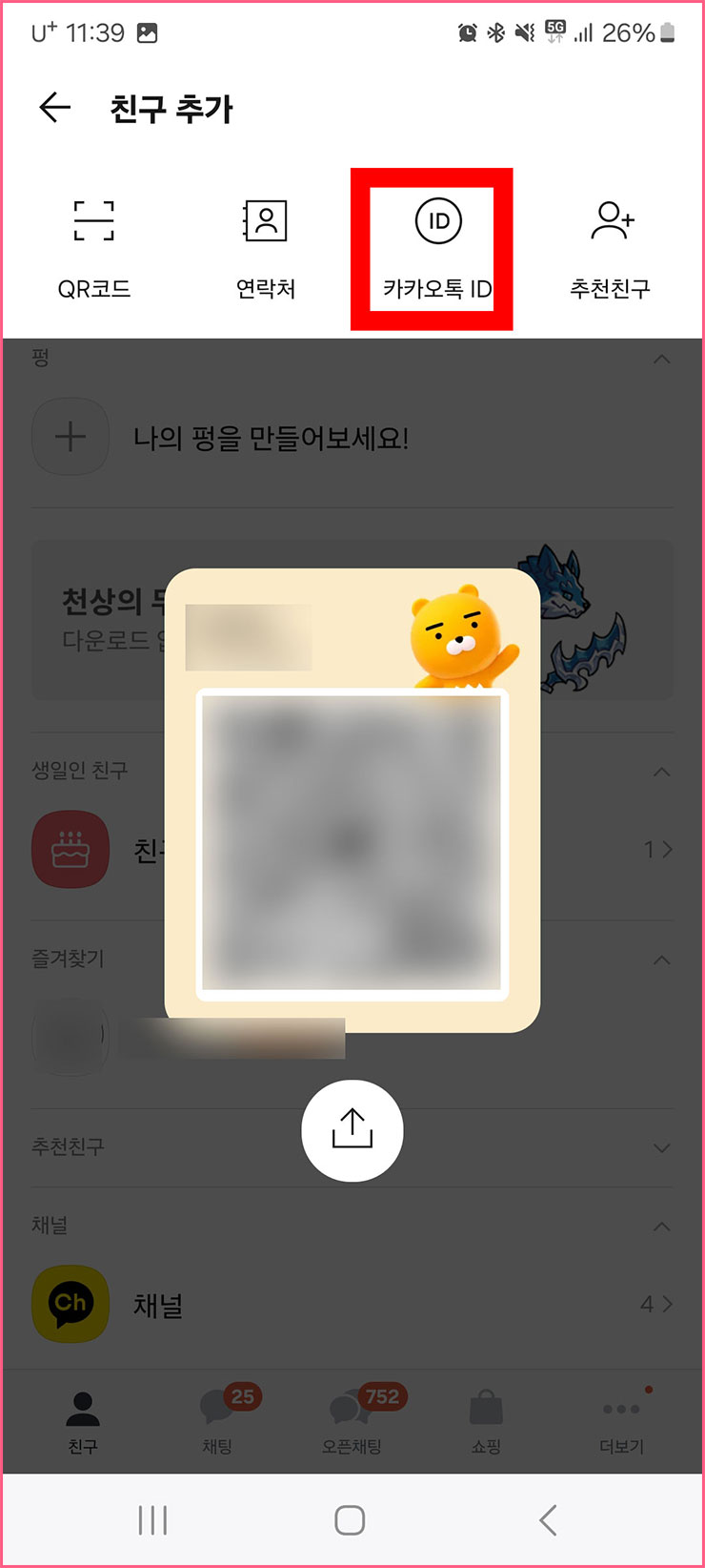 08. 친구 추가 탭이 나옵니다. 가장 좌측에 있는 'QR 코드'를 눌러주세요.
