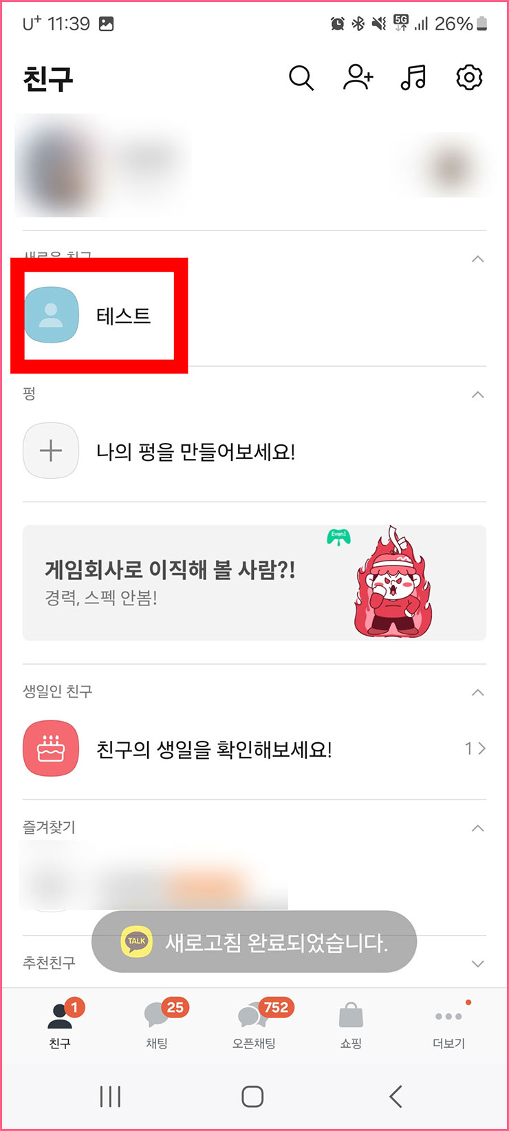 06. '새로운 친구' 자리에 새롭게 추가한 친구가 보일 겁니다. 이렇게 해서 전화번호를 통해서 카톡 친구 추가하는 법을 알아보았습니다. 두 번째 방법을 알아보겠습니다.