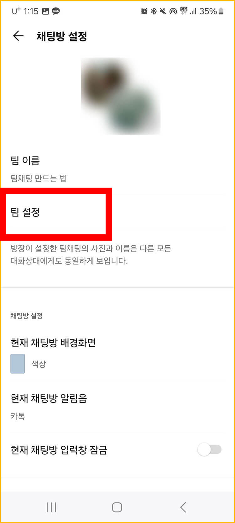 07. 채팅방 설정창으로 넘어옵니다. 여기서 '팀 설정'으로 들어가주세요.