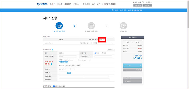 '기간'을 신청해주세요. 저는 1년으로 했습니다. 1년으로 했을 때 옆에 금액이 나옵니다.