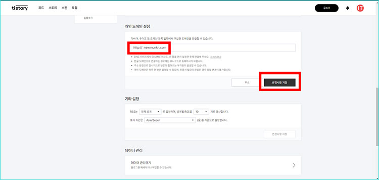 티스토리 다음 블로그 가비아 도메인 주소 연결 설정하기