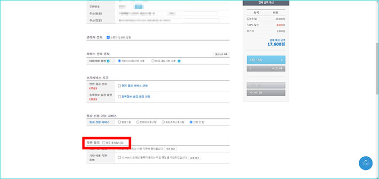 ▣ 그리고 아래에 있는 '약관동의'에 체크를 해주세요.