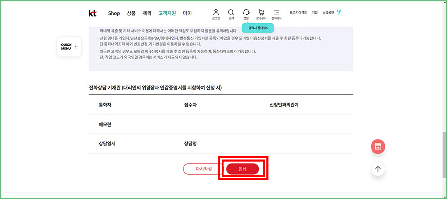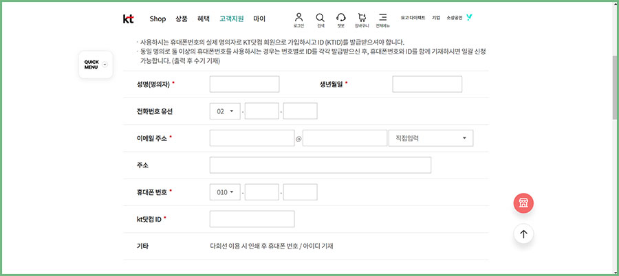 05. KT의 경우는 용지를 뽑는 방식이 아닌 웹페이지에서 여러분들의 개인 정보를 작성해주시면 됩니다.