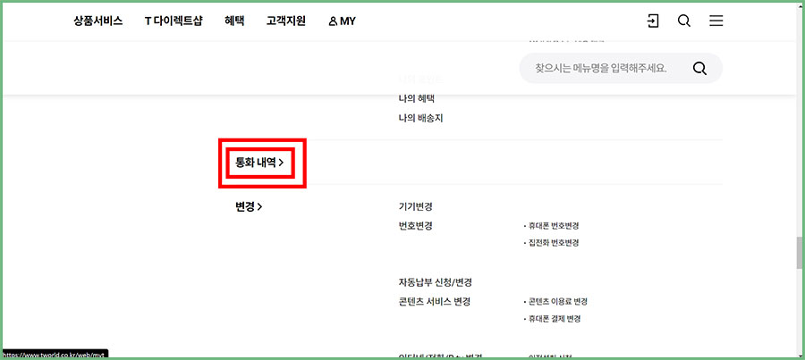 03. MY 창이 나온 상태에서 약간 아래로 스크롤을 내려주세요. 그러면 '통화 내역'이라는 항목이 나옵니다.