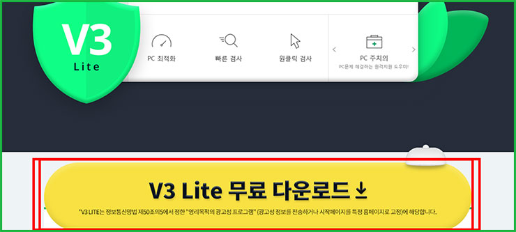 02. 여기서 두 번째 위치해 있는 'v3 lite 무료 다운로드'를 선택해서 공식 사이트로 가주세요.