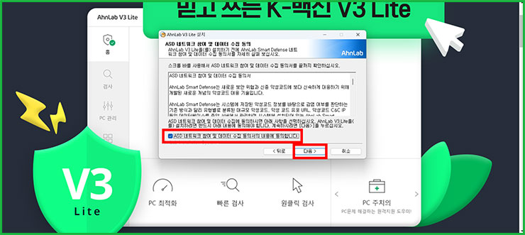07. Ahnlab V3 lite 설치 창이 나옵니다. '다음'을 선택해주세요.